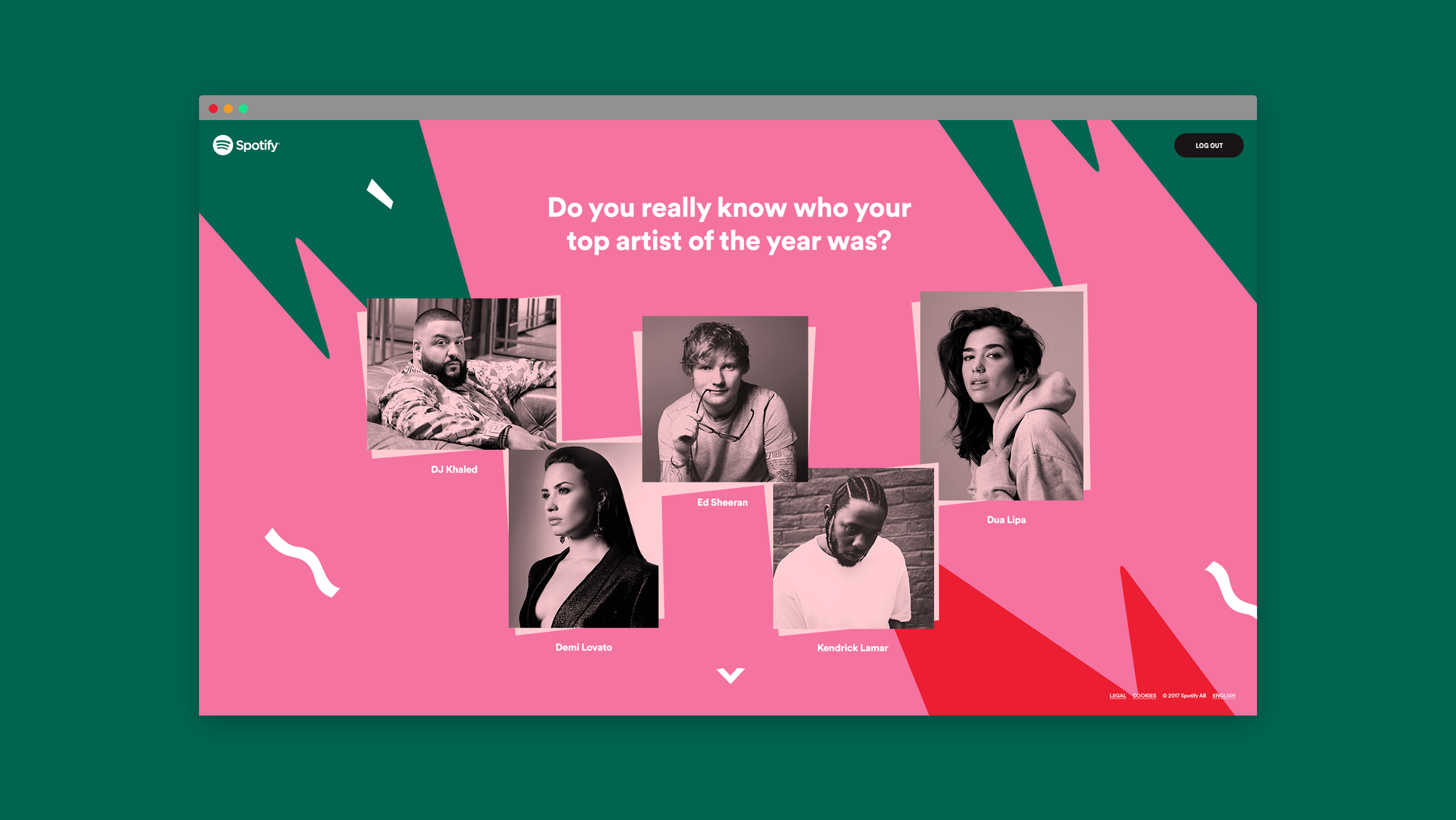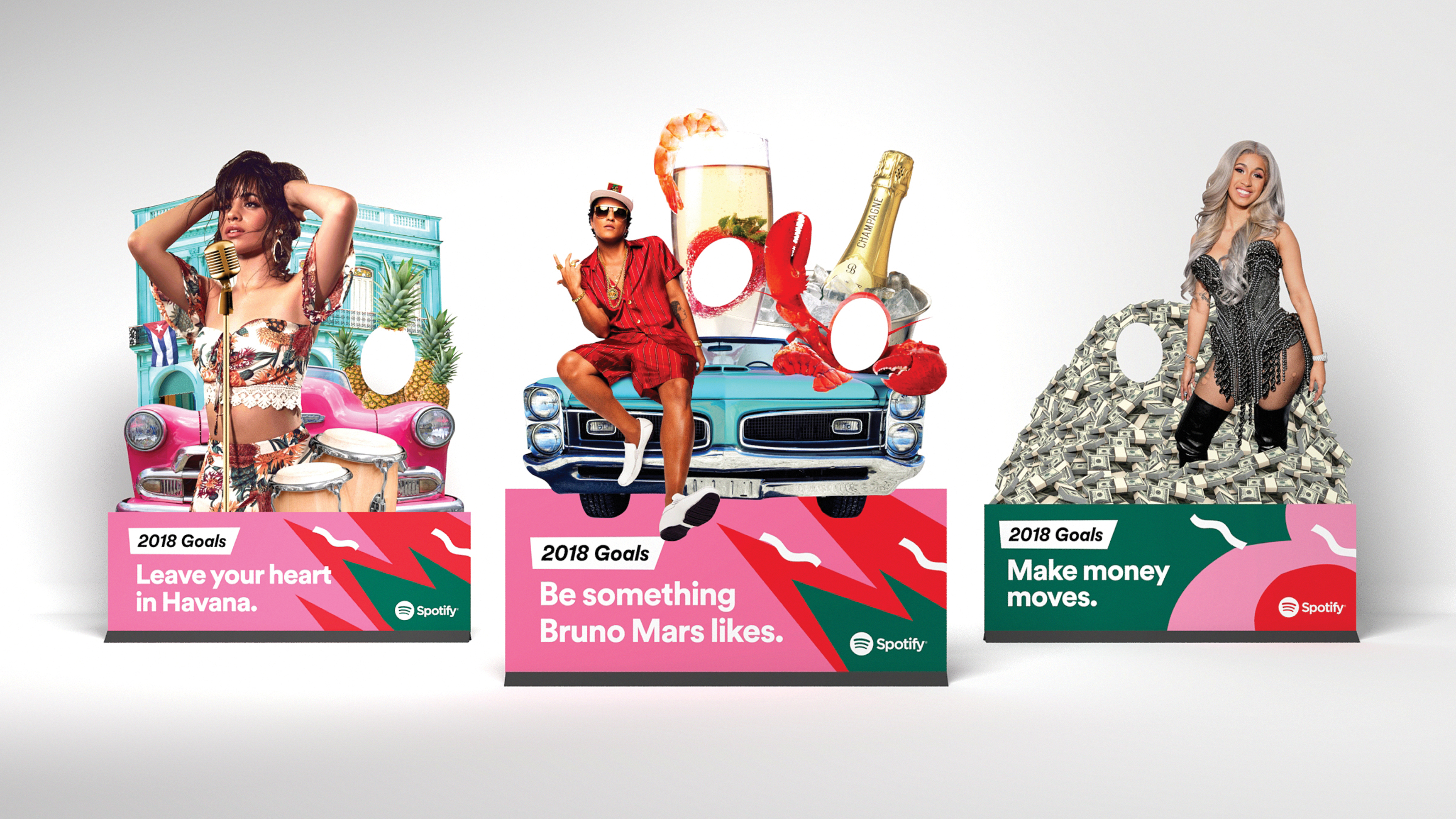 A global OOH campaign transformed user’s 2017 listening data into “2018 Goals.” A microsite let them look back on their year of listening year data and dared them to share with the world. We paid tribute to 2017’s top artist, Ed Sheeran, by having him devour one of 2017’s top hits.